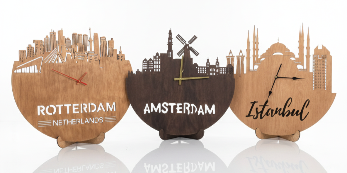 3D Map Rotterdam Wandklok LaserSnijKunst